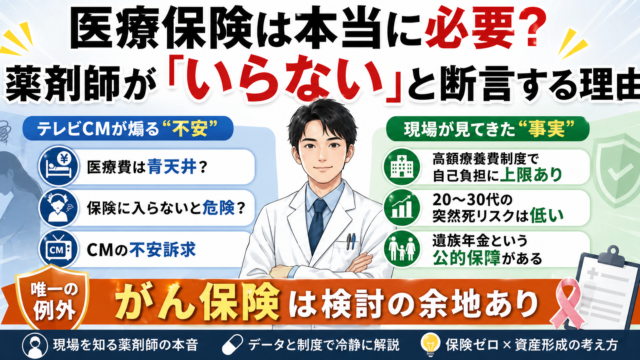 節約 【現役薬剤師が解説】医療保険と生命保険が「不要」と言える理由 hiropon 薬とお金の研究所 「保険に入るべきか」。この問いに、現役薬剤師であり、生命保険・医療保険に一切加入していない私が、データと論理で結論を出します。 あな …