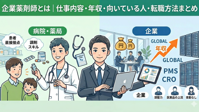 薬剤師キャリア 企業薬剤師とは|仕事内容・年収・向いている人・転職方法まとめ hiropon 薬とお金の研究所 「企業薬剤師に転職したい。でも、自分に向いているのか分からない」——そんなキャリアの迷子になっている薬剤師は、意外と多いです。病院や薬局で …