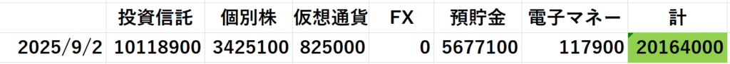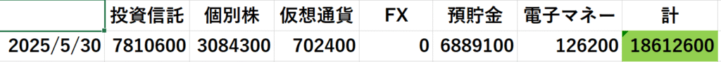 3月末で退職し、4月下旬に退職金が振り込まれたので、それを盛り込んだものを2025年4月時点の資産とします。