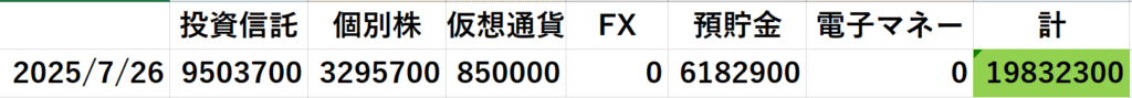 グラフの方が視覚的にわかりやすいかもしれませんが、実は7月の給料日時点で2000万円にかなり近くなっていました。