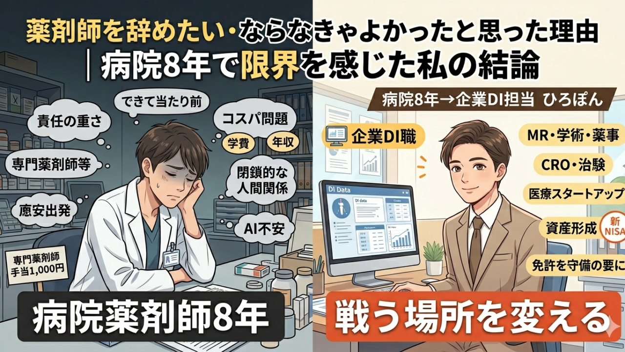 ➤薬剤師のキャリア・働き方・転職のリアル|病院→企業へ転職した薬剤師が語る「後悔しない判断軸」